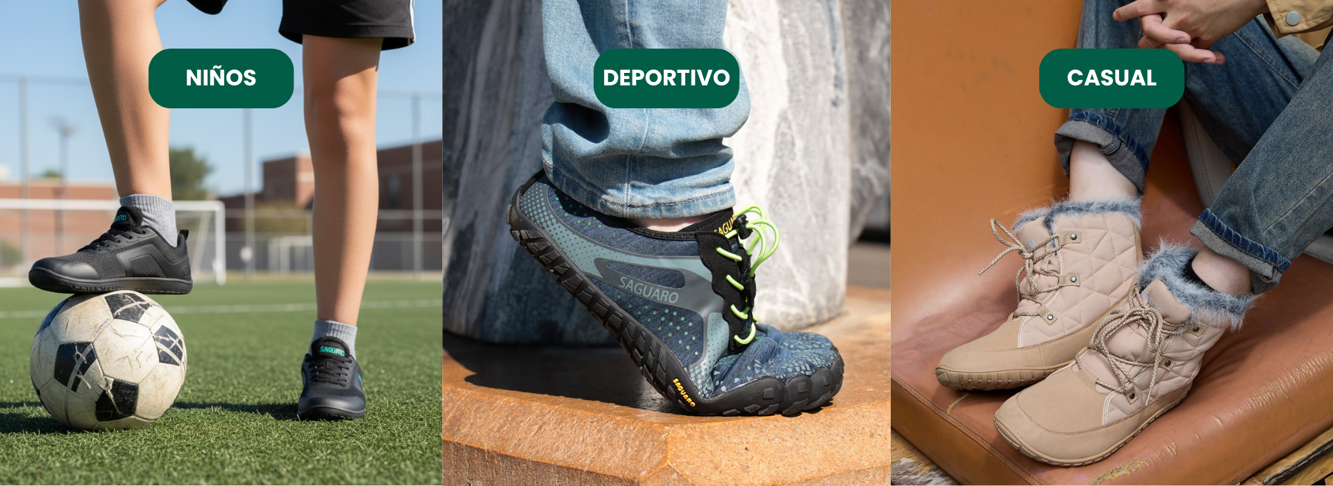 Nuestros botines barefoot están diseñados para acompañarte en cualquier aventura urbana o al aire libre. Con suela flexible, amplio espacio para tus dedos y diseño minimalista, ofrecen protección sin rigidez y estilo sin exceso.