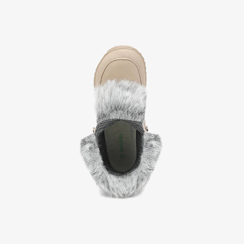 Elegantes botas de ante para invierno, con material impermeable para pies secos y calientes. Con colores lindos y cuello de piel sintética acogedor
